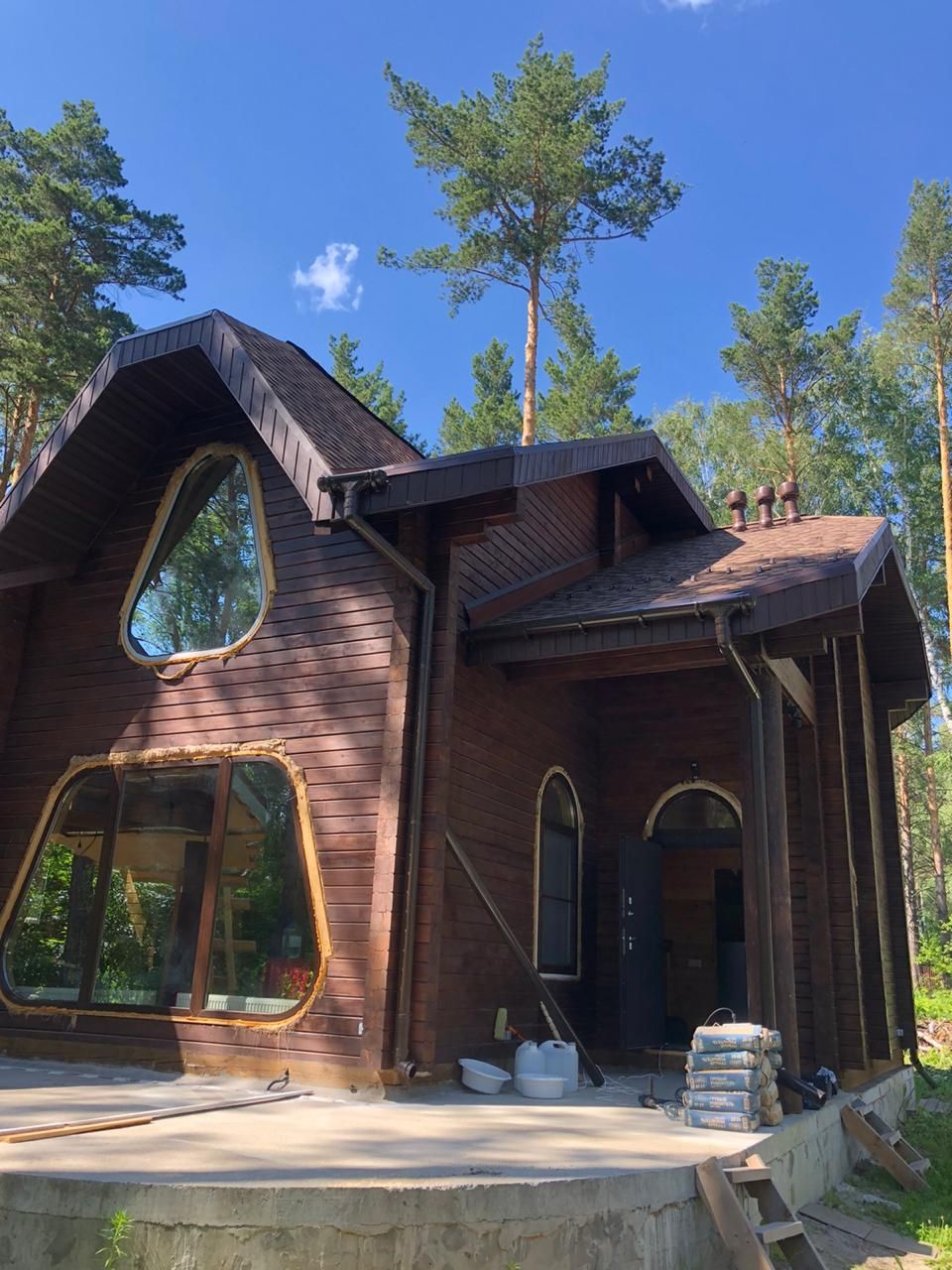 Монтаж кровли из гибкой черепицы Монтаж водосточной системы, карнизных свесов, шлифовка фасада окраска фасада