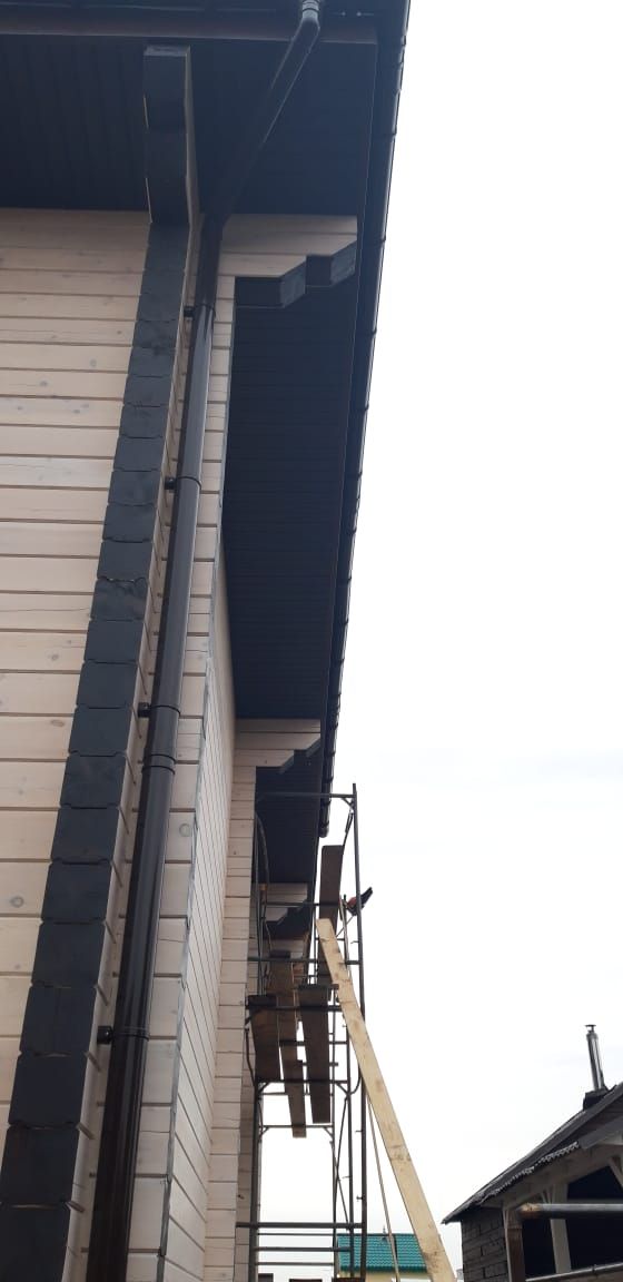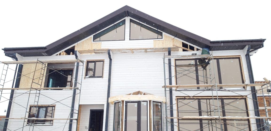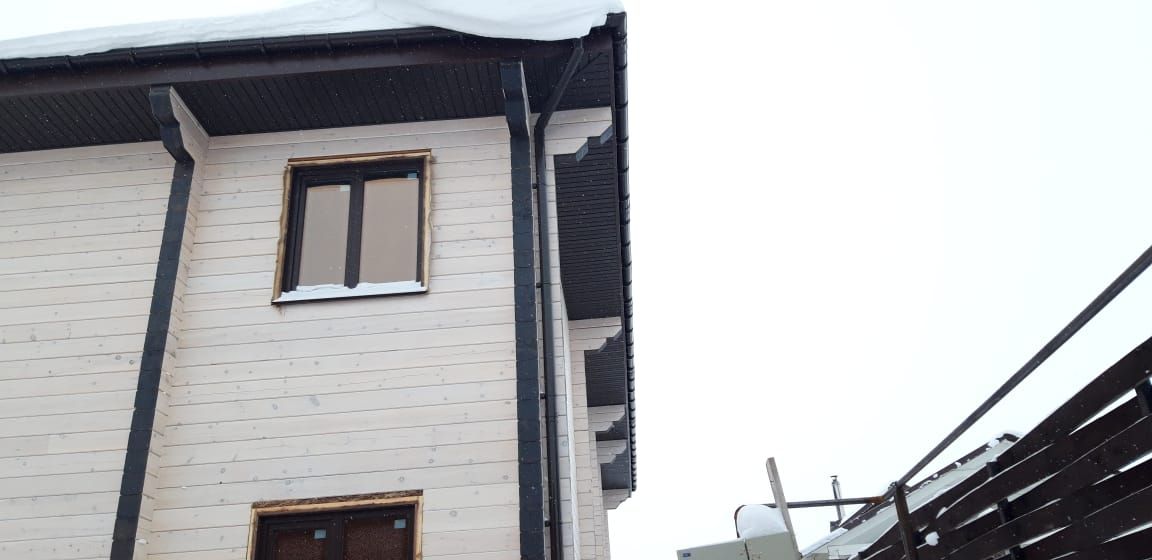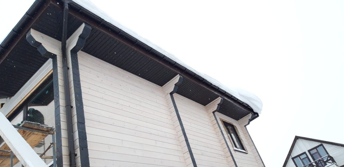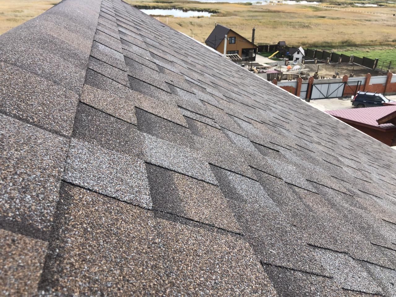 Монтаж кровли из гибкой черепицы, карнизных свесов и водосточной системы.