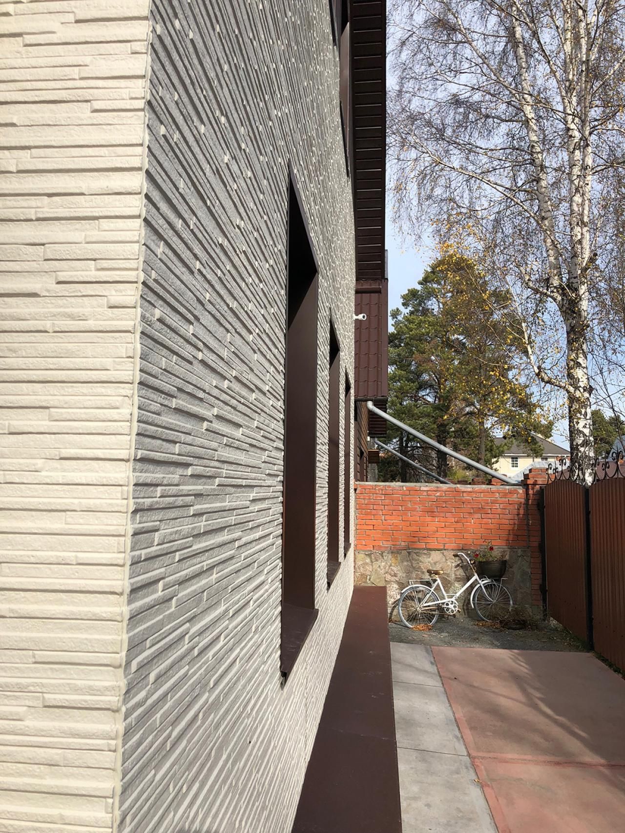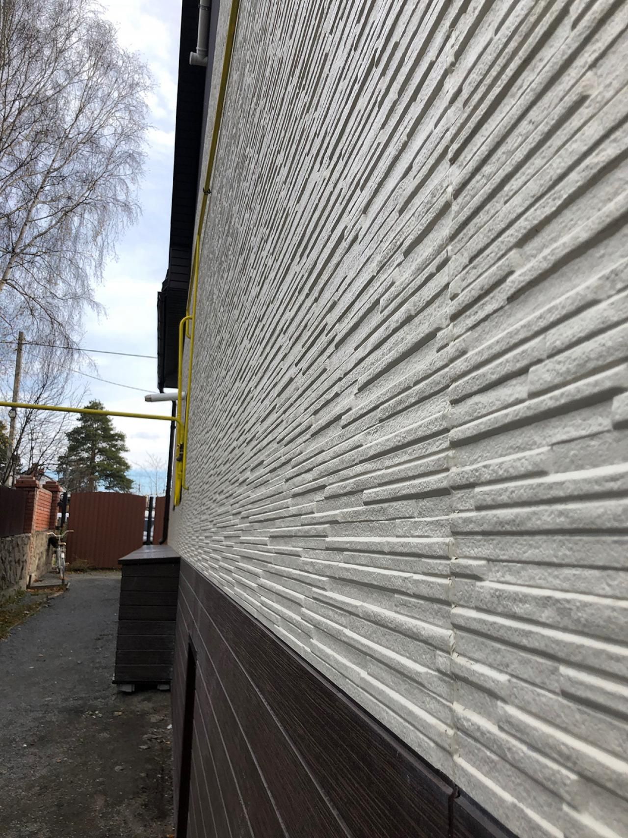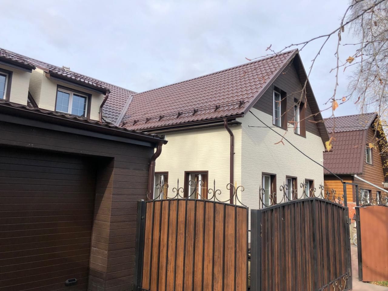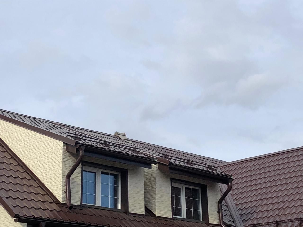 Монтаж фасада из фиброцементных панелей. Монтаж карнизных свесов, водосточной системы.Реконструкция скатной кровли (дополнительное утепление, увеличение вентиляционного зазора).